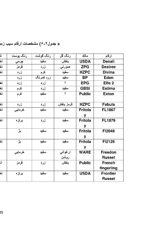 « جدول )6-2مشخصات ارقام سیب زمی