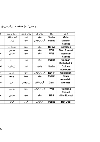 « جدول )7-2مشخصات ارقام سیب زمی