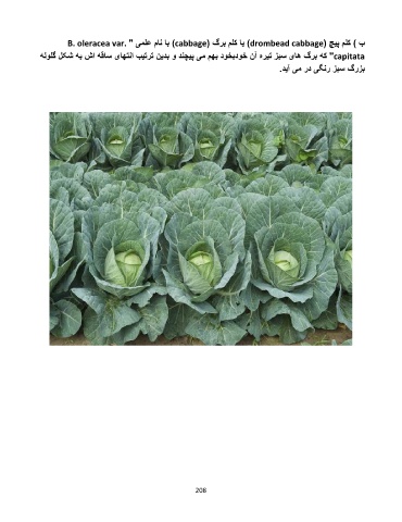 ب ) کلم پیچ ( )drombead cabbageیا کلم برگ ( )cabbageبا نام علمی " B. oleracea var. "capitataکه برگ های سبز تیره آن خودبخود بهم می پیچند و بدین ترتیب انتهای ساقه اش به شکل گلوله بزرگ سبز رنگی در می آید. 208