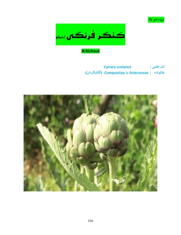 سبزی و صیفی :34 کنگر فرنگی آرتیشو Artichaut Cynara scolynus نام علمی : خانواده Asteraceae :یا ( Compositaeآفتابگردان) 216