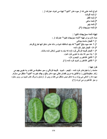 زنند .مخلوط فوق را با قاشق به درون فضای خالی میوه های بالغ و چاک خوردۀ "کایوا" منتقل می سازند.