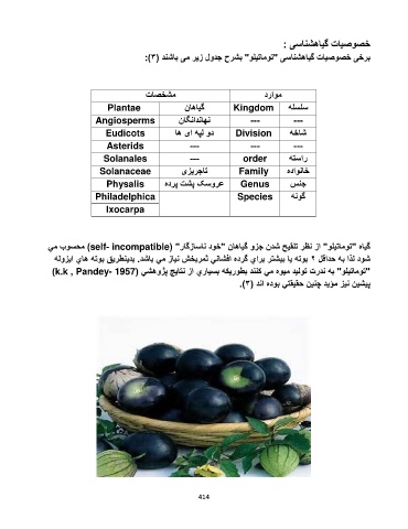 "توماتیلو" به ندرت تولید میوه مي كنند بطوریكه بسیاري از نتایج پژوهشي ()k.k , Pandey- 1957