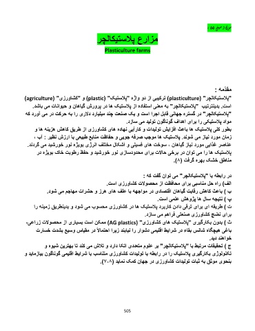 ت ) طریقه ای برای ترقی دادن کاربرد پلاستیک ها در کشاورزی محسوب می شود و بدینطریق زمینه را