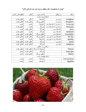 "جدول )1مشخصات ارقام مختلف واریته های توت فرنگی (":)4