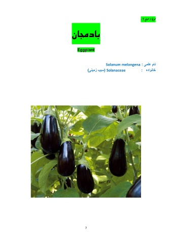 سبزی و صیفی : 2 بادمجان Eggplant نام علمی Solanum melongena : ( Solanaceaeسیب زمینی) خانواده : 7