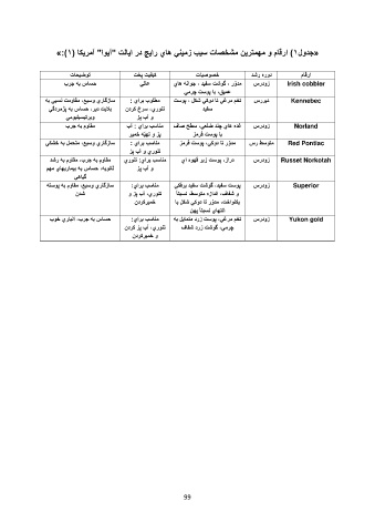 «جدول )1ارقام و مهمترین مشخصات سیب زمیني هاي رایج در ایالت "آیوا" آمریكا (»:)1